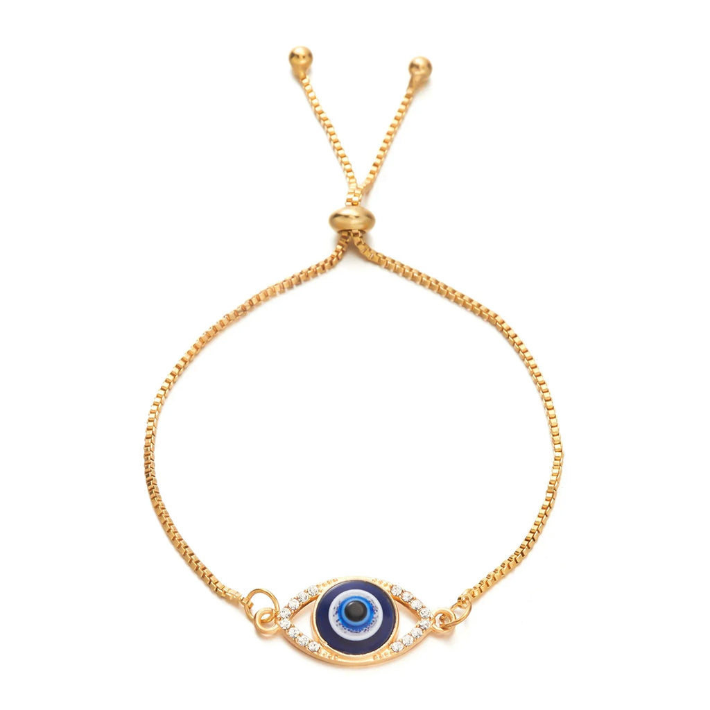 Add a touch of luck and protection to your style with our Blue Evil Eye Bracelet. This elegant bracelet features a lucky chain and a stunning gold or silver color. The adjustable design allows for the perfect fit, while the zircon detailing adds a touch of sparkle. A must-have accessory for any jewelry collection!