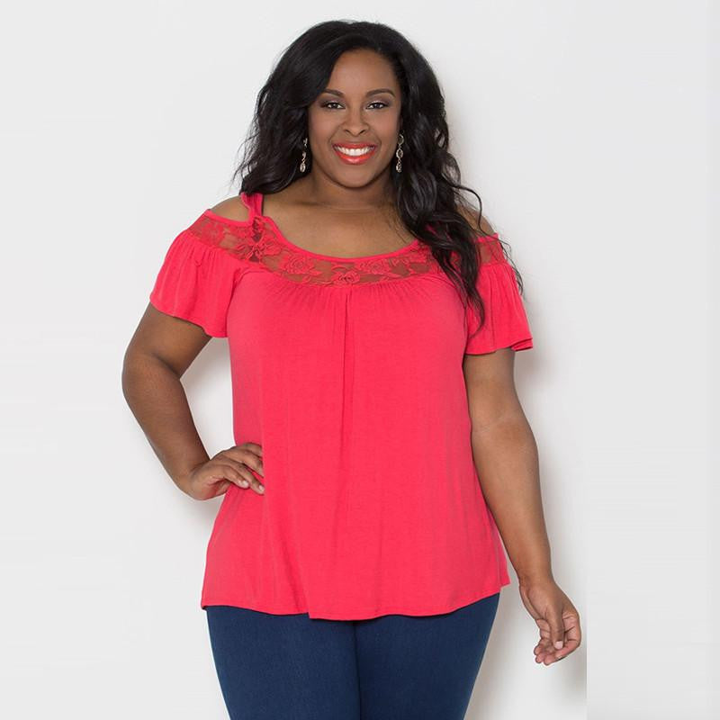 Our Women Off Shoulder Tops Short Sleeve Lace Patchwork Loose Casual Plus Size Women Blouses Shirt 5XL 6XL is not just a piece of clothing; it's an expression of personal style. Wear it with confidence and stand out in any crowd. Don’t miss out on this must-have addition to your wardrobe!