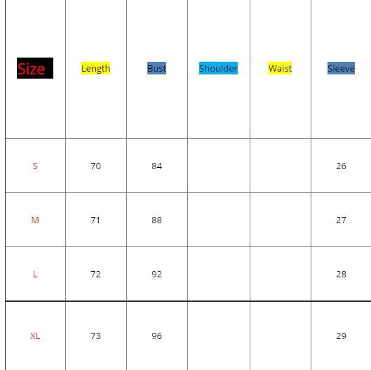 Size: S M L XL XXL