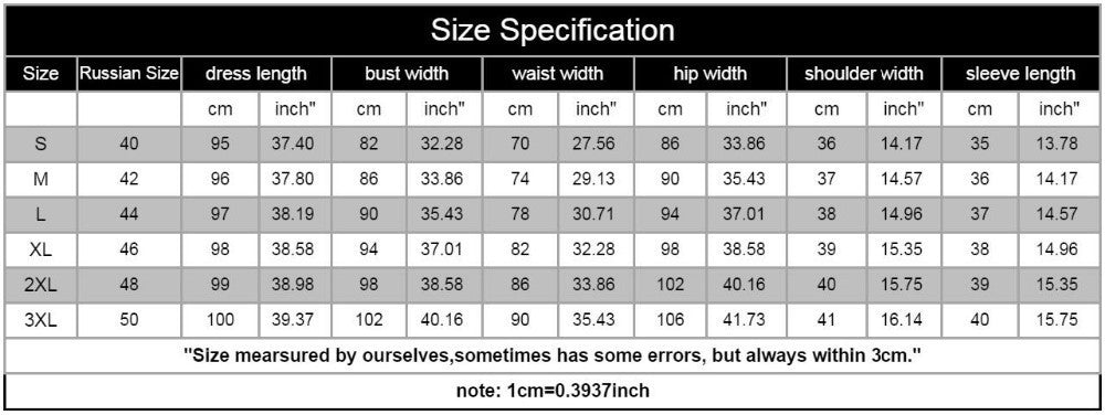 Size: S M L XL 2XL 3XL Women Dresses