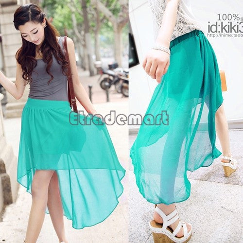 Introducing our Women's Asymmetrical Soft Chiffon Skirt, Bohemian Princess Pleated Long Maxi Dance Skirts 9 colors, the perfect addition to your summer wardrobe! This stunning skirt combines elegance and comfort, making it ideal for a variety of occasions. Crafted from high-quality polyester and spandex, the soft chiffon fabric drapes beautifully, allowing for graceful movement whether you're dancing or simply enjoying a day out.