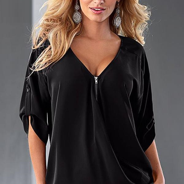 Elevate your wardrobe with our Womens Tops Fashion Women Chiffon Blouse Plus Size Loose Elegant Half Sleeve Shirt Black White Red Blue. This stylish blouse is designed to provide you with both comfort and elegance, making it the perfect addition to your seasonal outfits. Crafted from lightweight chiffon fabric, this blouse offers a flattering fit that drapes beautifully over your silhouette, ensuring you look stunning on any occasion.