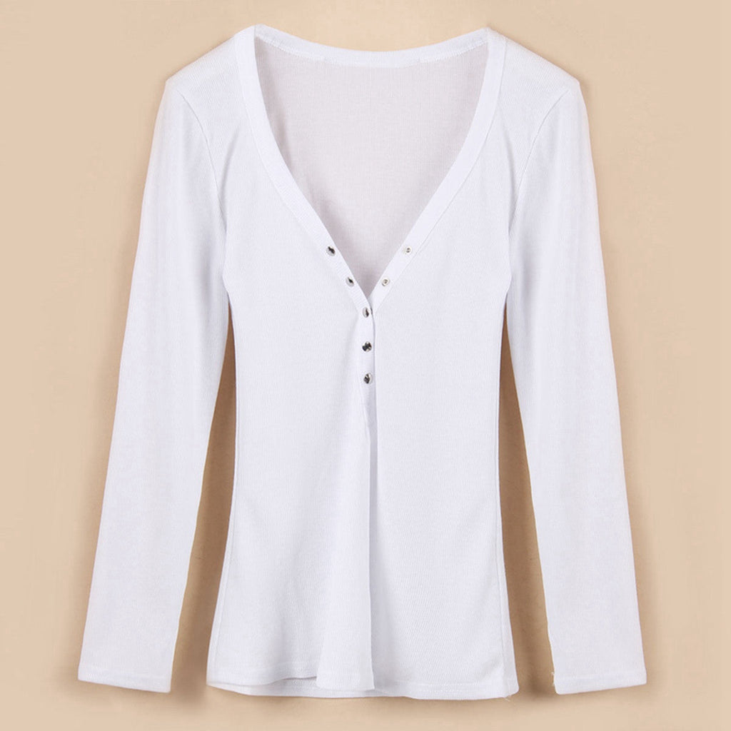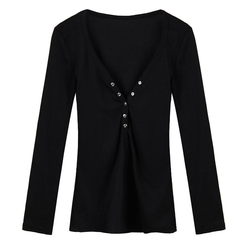 Introducing the Dark V Neck Women T Shirt Long Sleeve Top Tees Women Button Tops Plus Size, the perfect blend of style and comfort for every modern woman. This stunning top features a deep V-neck design that beautifully showcases your neckline while maintaining a trendy look. Designed with a flattering body-fit, this top accentuates your curves and offers a versatile option for both casual and semi-formal occasions.