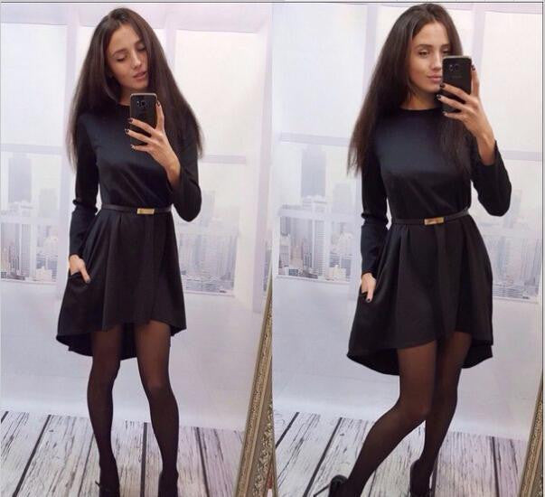 This black round neck shirt dress is so mundane. Get this beautiful summer and spring way into your closet today. This full sleeve length dress is stunning.