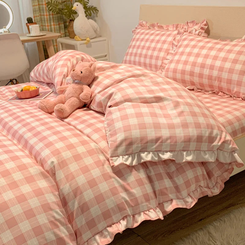 Transform your child's bedroom into a dreamy retreat with our Princess Lace Pink Bedding Sets Soft Wash Cotton Bed Linens Pillowcase Bed Sheet Quilt Cover For Girls Home Textiles. Crafted from premium quality 100% soft wash cotton, this bedding set combines comfort and elegance, making it the perfect choice for any little princess. The charming pink lace details add a touch of whimsy, appealing to girls of all ages, while ensuring a relaxing sleep experience.