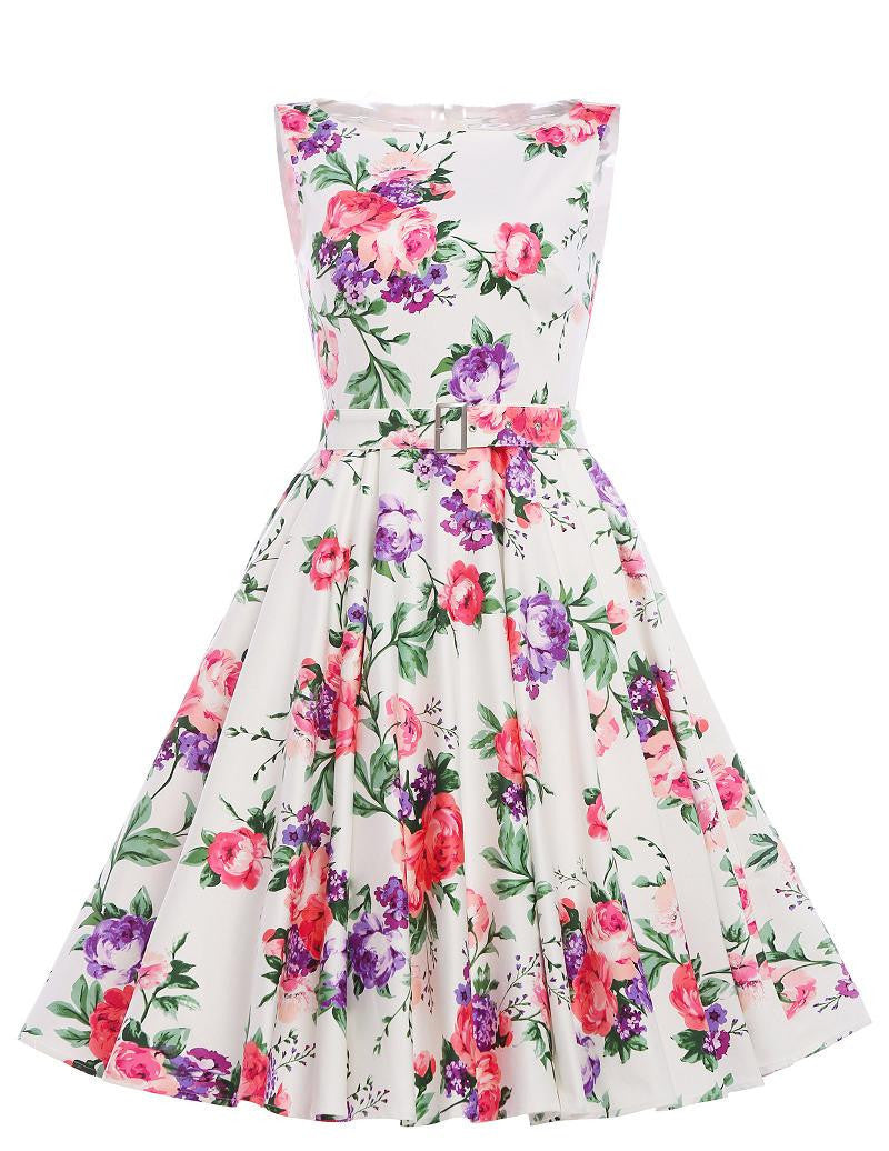 Step into timeless elegance with our Print floral 50s 60s Vintage dresses Audrey Hepburn Sleeveless style summer retro dress Vestidos robe womens clothing. This exquisite piece is crafted from high-quality, breathable cotton, ensuring comfort and style during the warm summer months. The vintage-inspired design, featuring a stunning floral print reminiscent of the iconic Audrey Hepburn era, allows you to embrace a chic look that never goes out of fashion.
