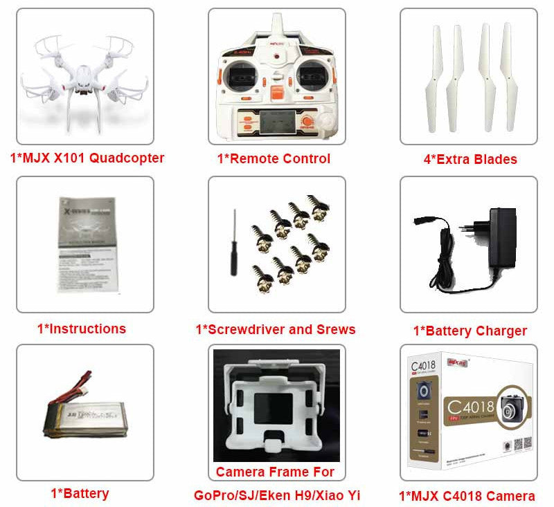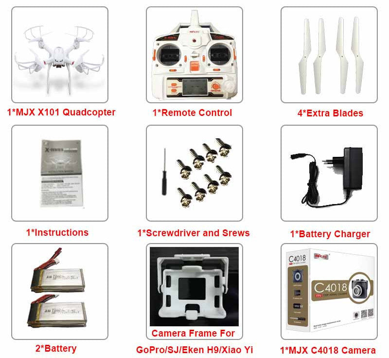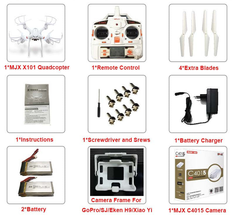 Introducing the Profession Drones MJX X101 Quadcopter 2.4g 6-axis Rc Helicopter Drone with Gimble can Add C4010 FPV Wifi Camera Hd Vs X8c X8G, the ultimate flying companion for both beginners and seasoned drone enthusiasts. This state-of-the-art quadcopter features a robust 6-axis flight control system, ensuring smooth and stable flights, making it easy to maneuver even for young pilots aged 6 and above.