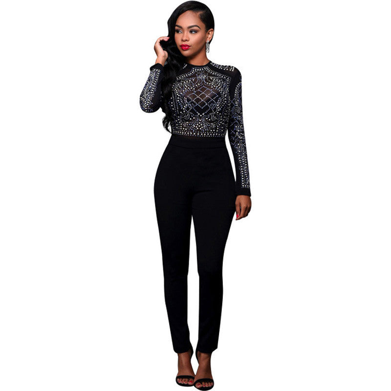 Model: Sexy Rhinestone Mesh Jumpsuit