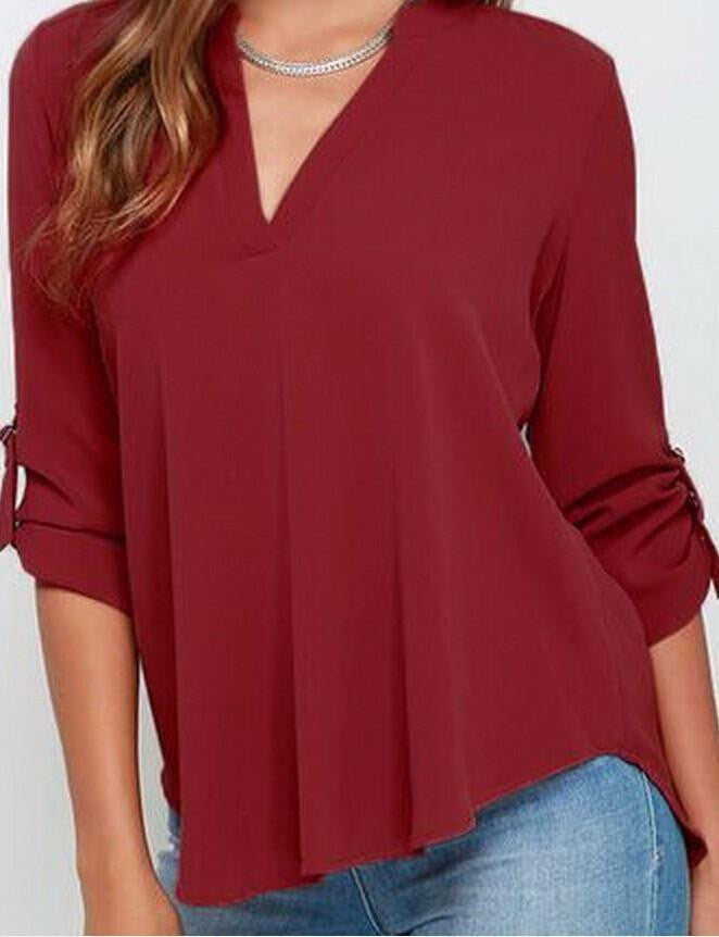 The long sleeves and elegant V-neck design add a touch of sophistication, while the solid pattern ensures versatility, allowing you to easily dress it up or down for any occasion. Whether you’re heading to the office, a casual brunch, or a night out, this blouse is sure to turn heads.