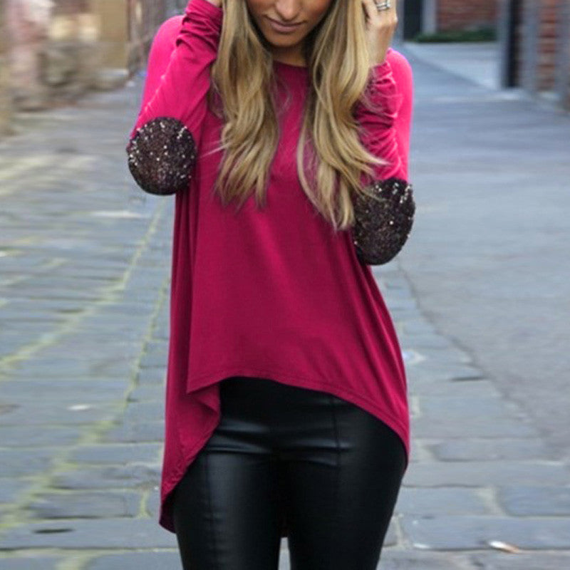 Introducing the S-4XL Women Loose Long Sleeve Blouses Shirts Glitter Patchwork Casual Blouse Pullover Plus Size Tops, a must-have addition to your wardrobe! This stylish blouse combines comfort and elegance, making it perfect for any casual outing or special occasion. With its unique glitter patchwork design, you will surely stand out while feeling confident and chic.