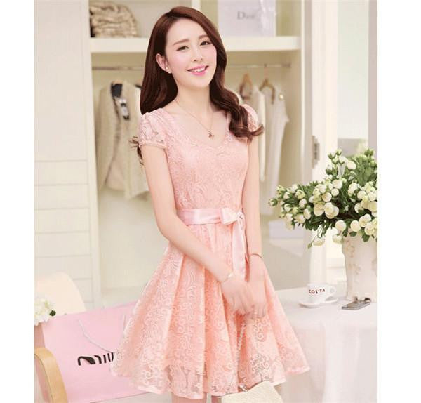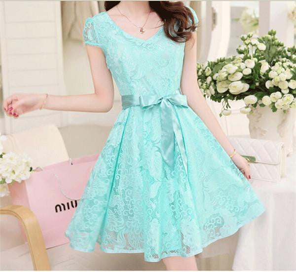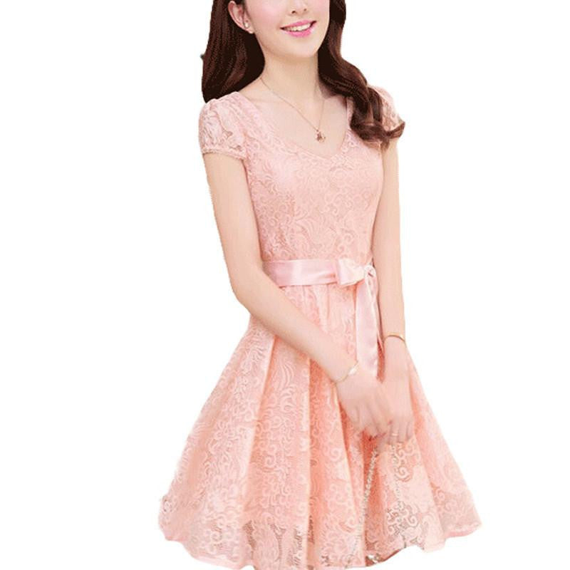 Step out with confidence and make a statement this season in our Women Lace Dresses Female V-Neck Bow Sashes Decor Puff Sleeve Show Slim Fair Lady Mid. Your perfect summer dress is just a click away!