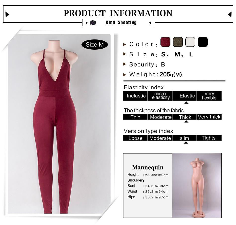 The Sleeveless Elegant Jumpsuit Fashion Bodycon Deep V neck Halter Cross Suede Club Jumpsuits and Rompers for Women is made from high-quality broadcloth fabric, providing a soft touch against your skin while maintaining durability. With a full-length design, it’s perfect for any season, making it a versatile addition to your closet.