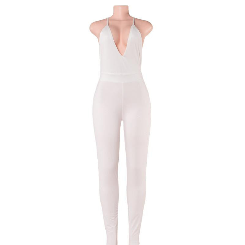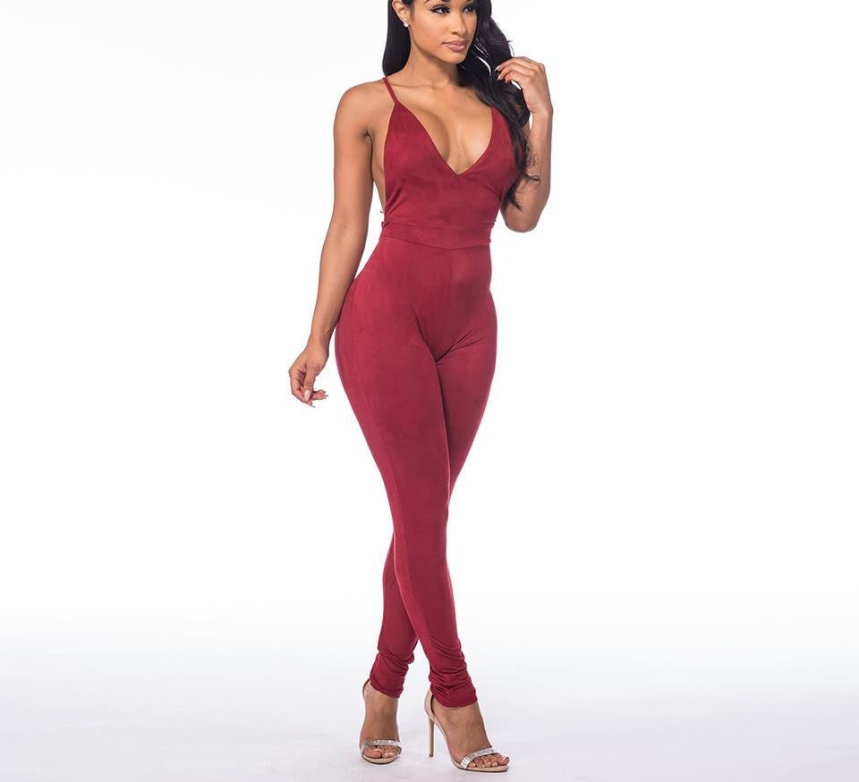 Elevate your wardrobe with our Sleeveless Elegant Jumpsuit Fashion Bodycon Deep V neck Halter Cross Suede Club Jumpsuits and Rompers for Women. This stunning piece is designed for the modern woman who wants to make a bold statement. Crafted from a luxurious blend of acetate, spandex, and polyester, this jumpsuit offers both comfort and style, ensuring you feel confident at any event.