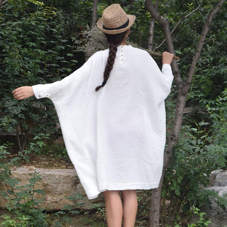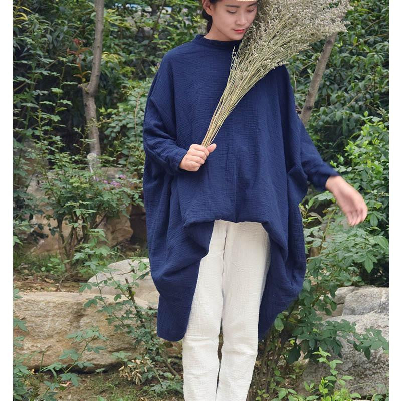 Elevate your wardrobe with the Women Tops Stand Collar Batwing Sleeve Big Shirts Loose Casual Dress 100%Cotton Women Dress Dress S67 and experience the perfect combination of elegance and functionality!