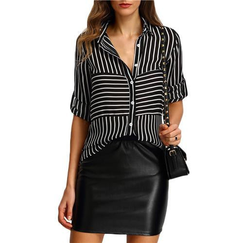 Available in multiple sizes to cater to various body types, please contact us for detailed sizing information. Make a statement with the Womens Striped Fashion Shirt Blouses Black Lapel Long Sleeve Striped Buttons Casual Chiffon Office Blouse and enjoy the perfect blend of comfort and style!