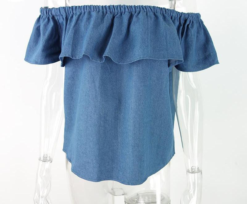 Introducing the Simplee sexy off shoulder women denim tops Casual ruffles short sleeve blue Loose beach girl tops, the perfect addition to your summer wardrobe! This stylish denim top combines comfort with a touch of chic, making it ideal for beach outings, casual gatherings, or a night out with friends. Crafted from high-quality denim and spandex, this loose-fitting top offers both breathability and flexibility, ensuring you stay fashionable all day long.