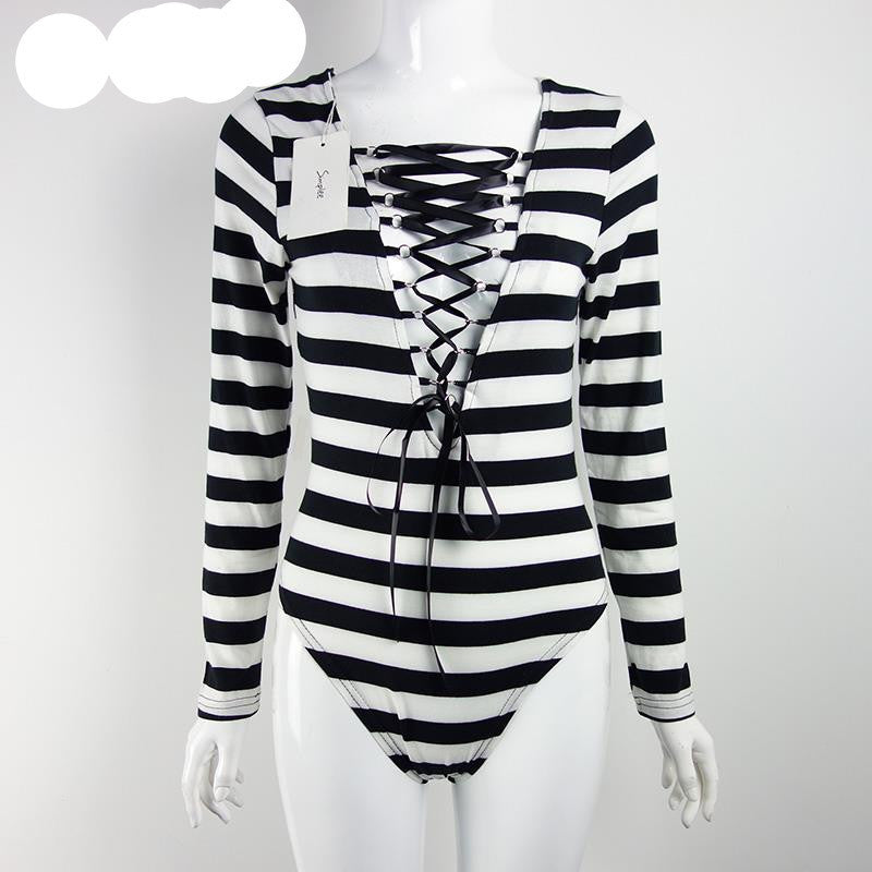 This Simplee Apparel Sexy deep v neck lace up black jumpsuit romper Women elastic slim long sleeve tops Casual cami short bodysuit is not just another piece in your closet; it’s a wardrobe essential. Its solid pattern and hollow-out decoration give it a fashionable edge, making it an ideal choice for any fashion-forward woman. Available in multiple sizes, this stylish bodysuit caters to all body types.