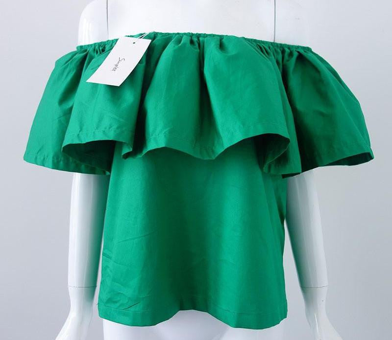 Elevate your wardrobe with our stunning slash neck ruffles women tops tees Off shoulder beach style tops Women blouses shirt party tube top. This fashionable and versatile top is designed to make you stand out at any occasion, whether it's a casual day out or a lively evening party. The unique slash neck and elegant ruffles add a touch of femininity, while the off-shoulder style showcases your shoulders beautifully.