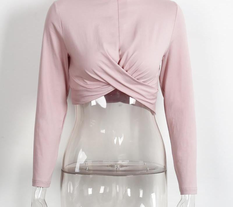 This cross long sleeve crop top Women chic black fold short top tees slim party white blouse shirt is not just a fashion statement; it's a celebration of your individuality. The O-neck collar and full sleeve length provide just the right amount of coverage, while the cropped length adds a trendy touch. Whether you're dressing up for a night out or keeping it casual, this top will keep you looking fabulous.
