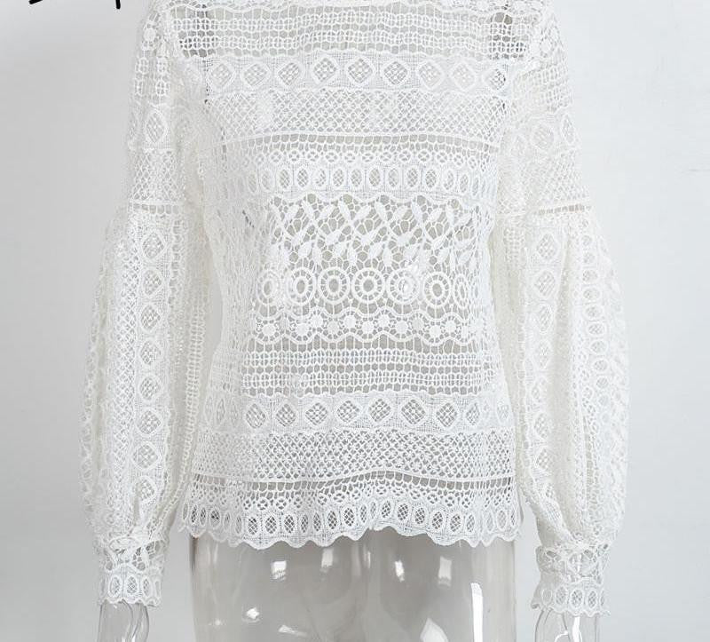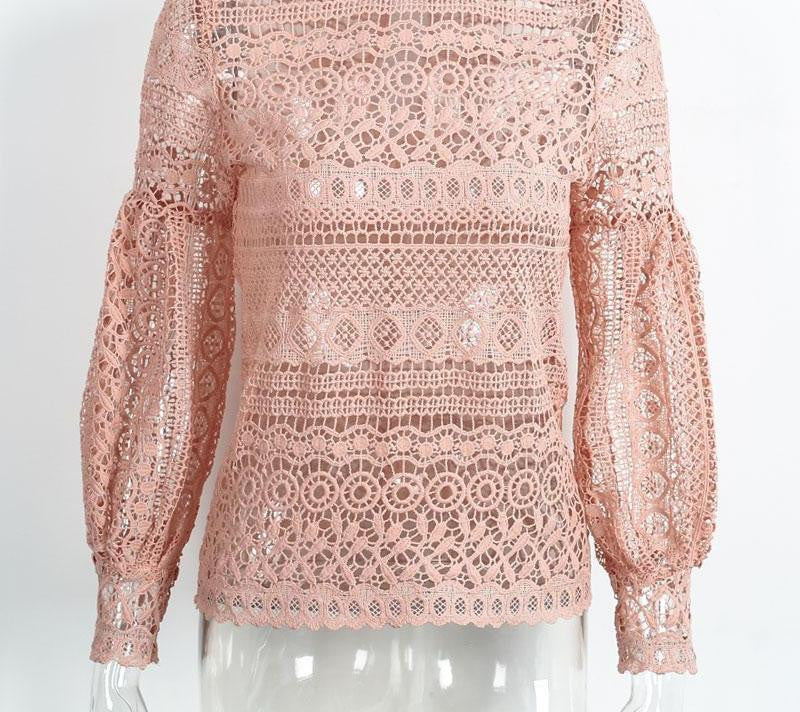 This White lace blouse shirt women top Casual hollow out lantern sleeve pink elegant geometry cool blouse features a comfortable O-neck collar and regular-length fit, making it easy to wear all day long. Whether you're heading to work or enjoying a weekend brunch, this blouse is designed to keep you looking fabulous and feeling confident.