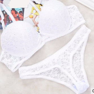 Two piece bra set comes with adjustable straps and fully supported with under- wire. Order your 3/4 cup size lace sets. Â A sexy and comfortable look with lace trimmed edges.