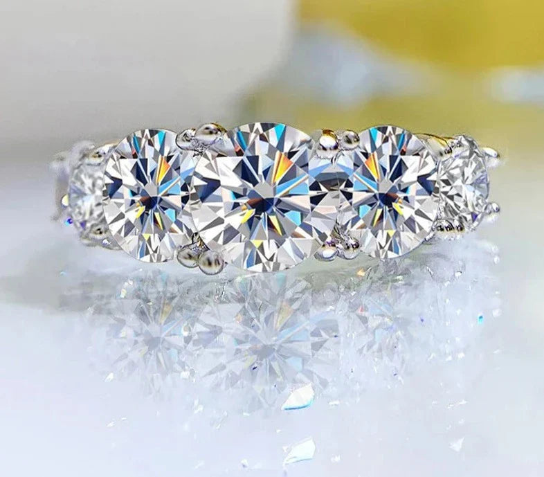 Elevate your elegance and make a statement with our 18k Plated 3.6CT All Moissanite Rings for Women 5 Stones Sparkling Diamond Wedding Band S925 Sterling Silver Jewelry. Order yours today and experience the beauty of luxury!