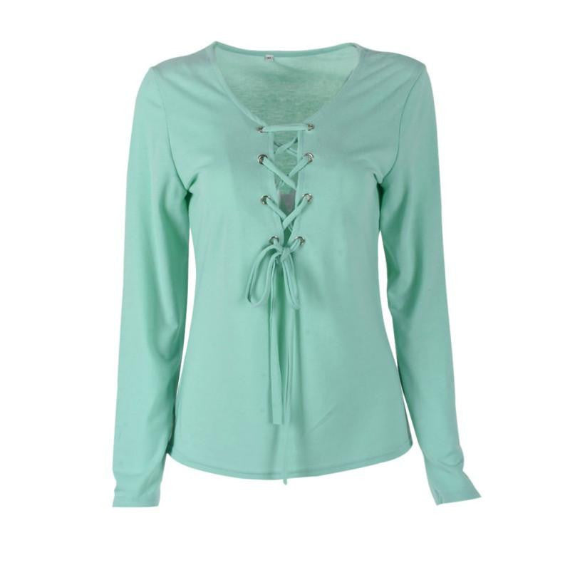 Discover the perfect blend of style and comfort with our Women Clothes Bandage Lace Up Long-Sleeve T-shirt Female Deep V T-shirts Tops 5 Colors. This stunning top is designed for the modern woman who values both fashion and functionality. The deep V-neckline adds a touch of elegance, while the bandage lace-up detail gives it a unique look that sets you apart from the crowd.
