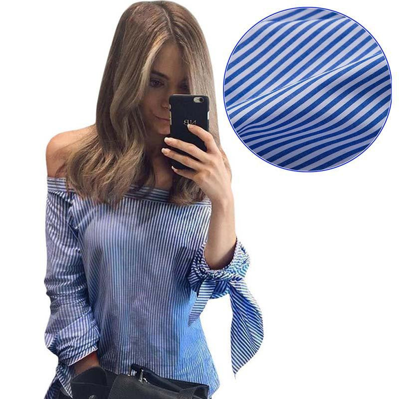 This Women Elegant Blue White Striped Blouse Off The Shoulder Blouses Slash Neck Long Sleeve Bow Tops is perfect for brunch with friends, a day at the office, or a romantic dinner date. Pair it with your favorite jeans or a stylish skirt to create a look that’s uniquely yours.