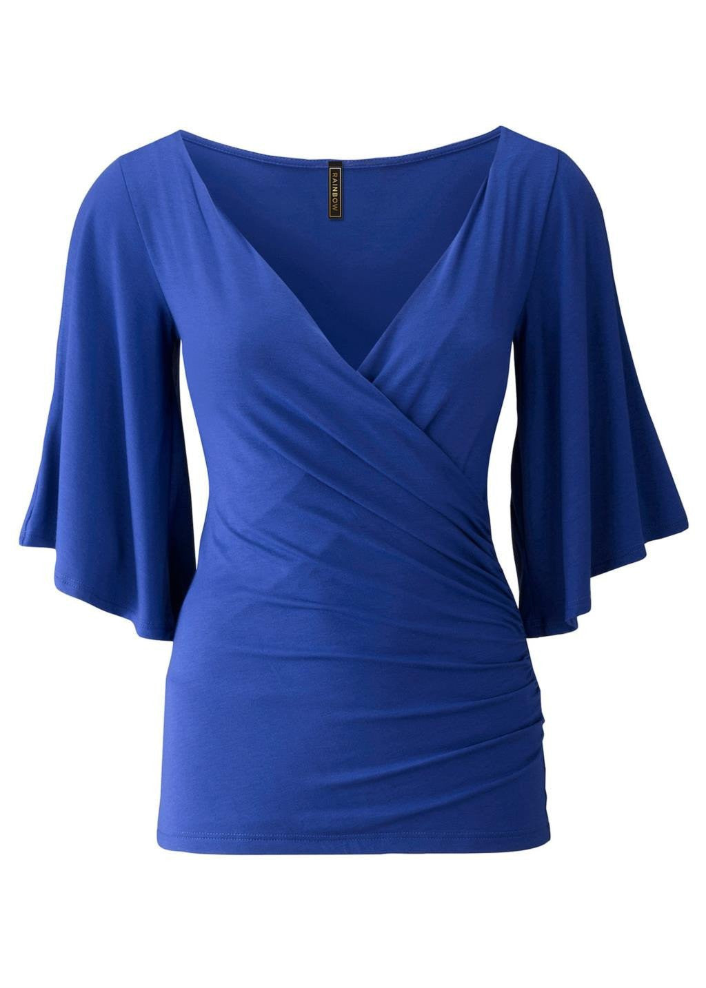 Featuring a flattering butterfly sleeve and a chic V-neckline, this shirt is designed to enhance your silhouette while providing a relaxed fit. The solid pattern ensures that it can be easily paired with any outfit, making it perfect for both casual outings and more formal occasions.