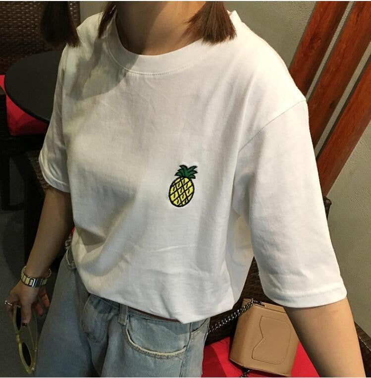 Elevate your day-to-day style with our women's soft-mei fruit embroidery loose base was thin wild short-sleeved wild. Choose comfort without compromising on style and make this stunning piece a go-to in your collection!