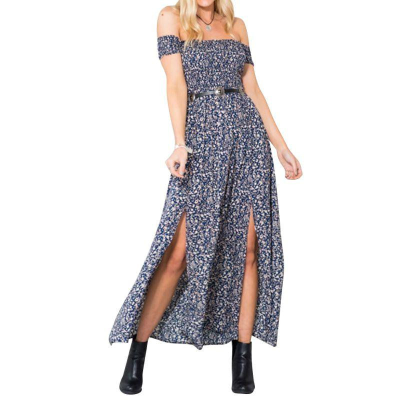 Don’t miss out on adding this beautiful piece to your summer collection. Order your Women's Vintage Dress Floral Print Off Shoulder Split Tube Long Party Maxi Dress Beach Dresses now and get ready to shine!