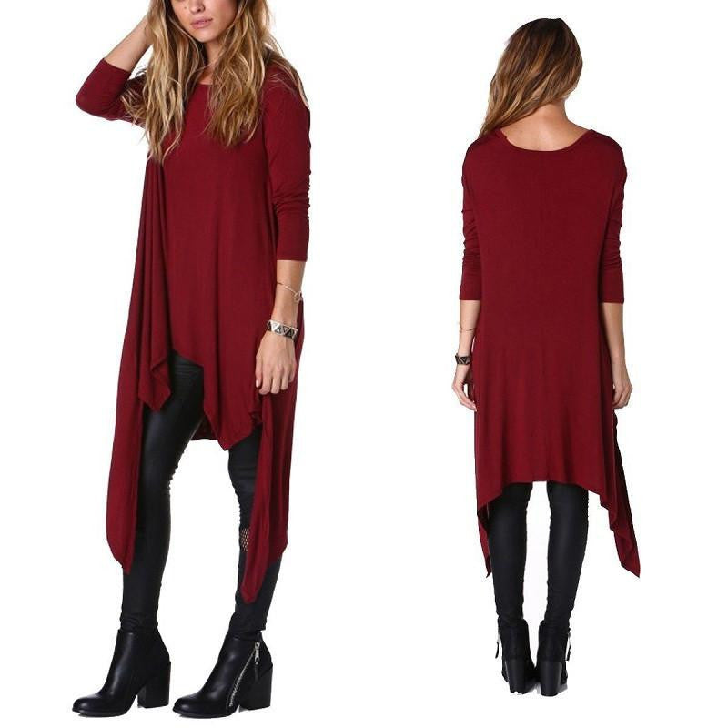 Discover the perfect blend of style and comfort with our Tshirt women casual Women O-neck fashion Loose plus size Asymmetric long sleeve Tunic T-shirt Dress HOT. This versatile piece can be worn as a chic tunic or a casual dress, making it an essential addition to your wardrobe. Crafted from a high-quality blend of Lycra and cotton, it boasts a soft feel against the skin while providing a flattering silhouette that suits all body types.