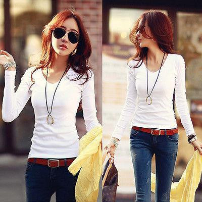 The body fitting cotton long sleeve tees are a great choice for ladies and teens.The round neck cotton top is a great piece. The tops are chic and highly fashionable.