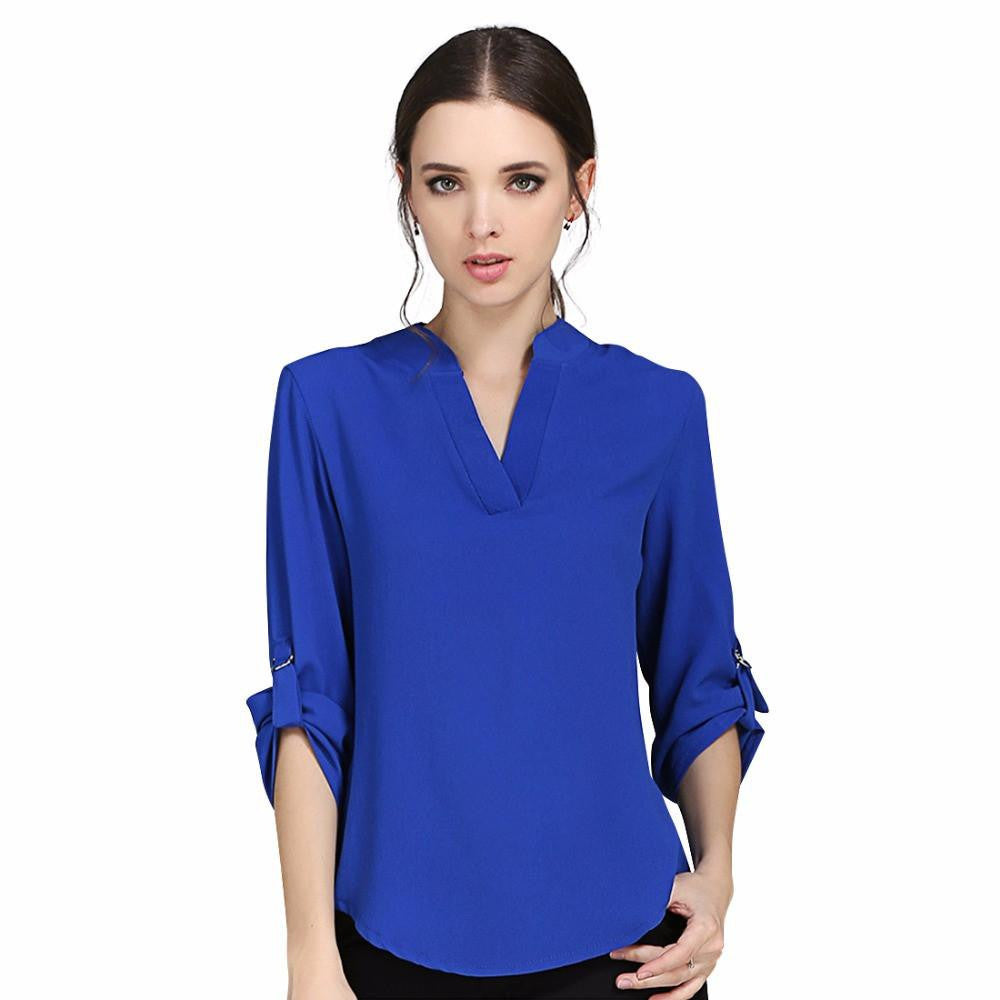 This Women Blouses 4XL 5XL Plus Size Fashion Chiffon Blouse Shirts Women's tops Solid Long Sleeve Casual V-Neck is not just about style, it's about confidence. The slim-fit version enhances your silhouette while the regular clothing length provides the perfect coverage. Enjoy the simplicity of solid colors that can be easily accessorized to create stunning outfits.