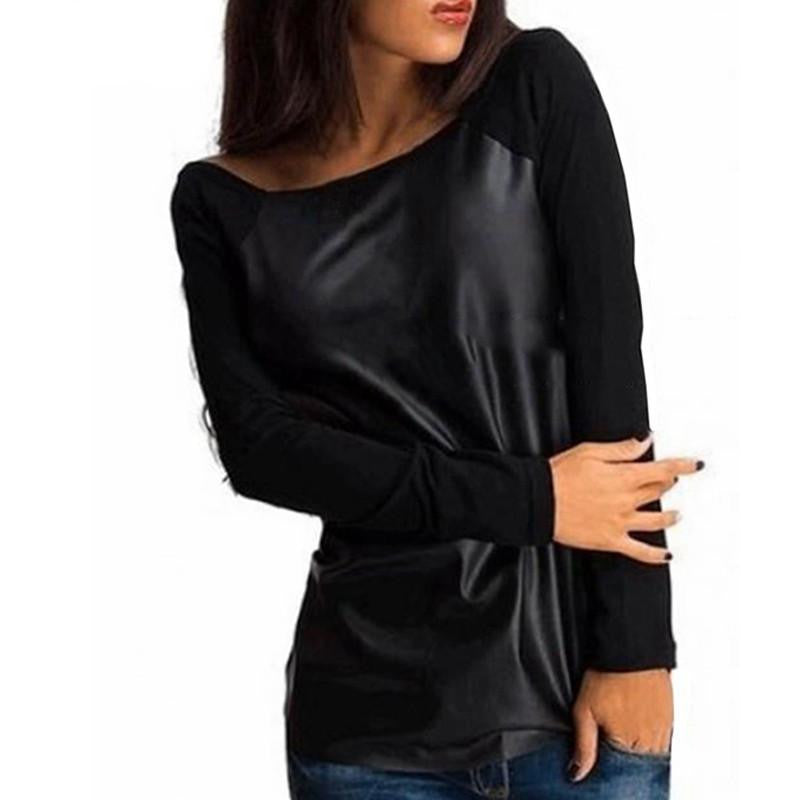 Elevate your wardrobe with our Women Personality Shirts Long Sleeve PU Leather Patchwork Blouses Fashion Casual Loose Tops Plus Size S-XL. This stunning blouse is crafted for the modern woman who values both style and comfort. The trendy PU leather patchwork design adds a unique flair, making it a perfect choice for various occasions, from casual outings to chic gatherings.