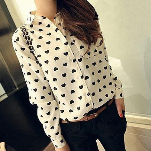 With its eye-catching heart print and comfortable design, the Women Casual Clothing Slim Love Heart Print Long Sleeve Shirt Top Blouse is a must-have addition to your wardrobe. Whether you're heading out with friends or running errands, this blouse will keep you looking stylish and feeling confident. Don't miss the chance to elevate your casual clothing collection with this delightful piece!