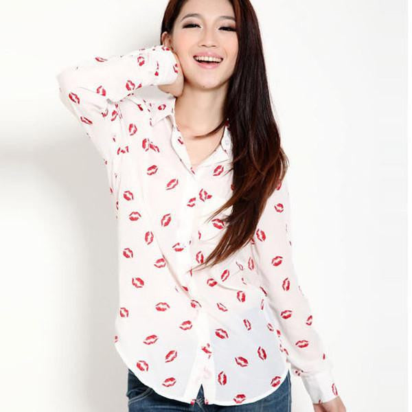Elevate your wardrobe with our Women Chiffon blouses Kiss Red Lip Printed Blouses Tops Long Sleeve Shirt Plus Size. This stunning blouse combines elegance with a playful twist, featuring a charming kiss red lip print that adds a bold statement to any outfit. Crafted from high-quality chiffon, this blouse offers a lightweight and breathable feel, perfect for any season.