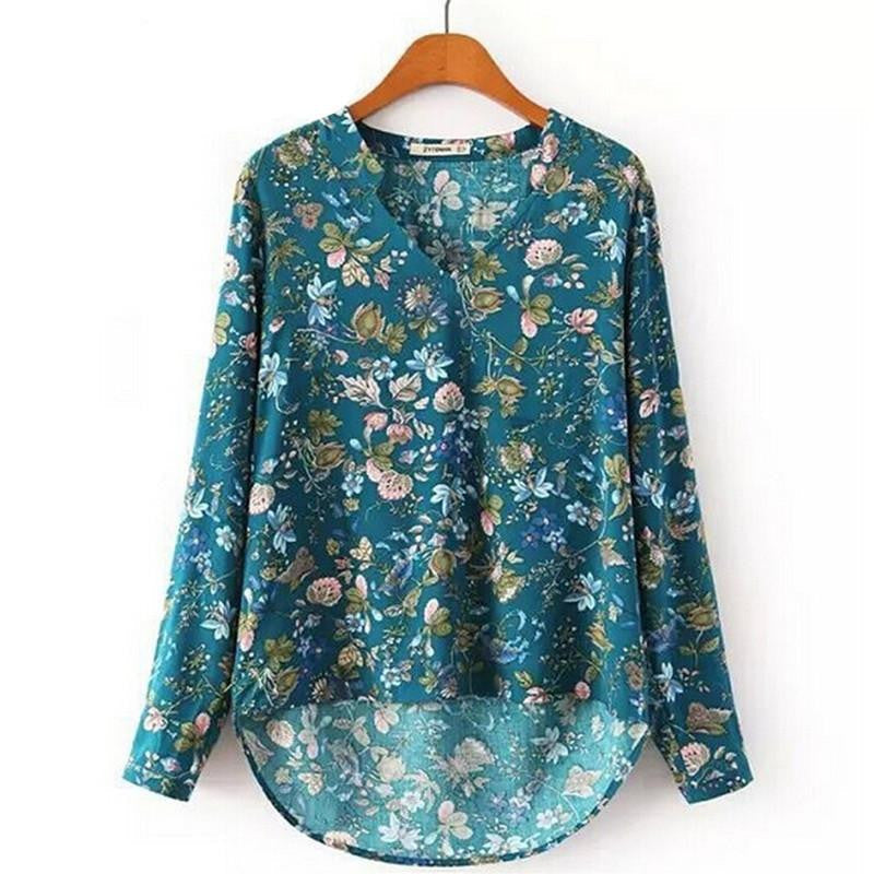 Featuring a chic V-neck collar and full-length sleeves, this blouse showcases a timeless vintage appeal. The floral pattern adds a touch of femininity, making it a versatile addition to your fashion lineup. Pair it effortlessly with jeans, skirts, or shorts for a complete look that turns heads.