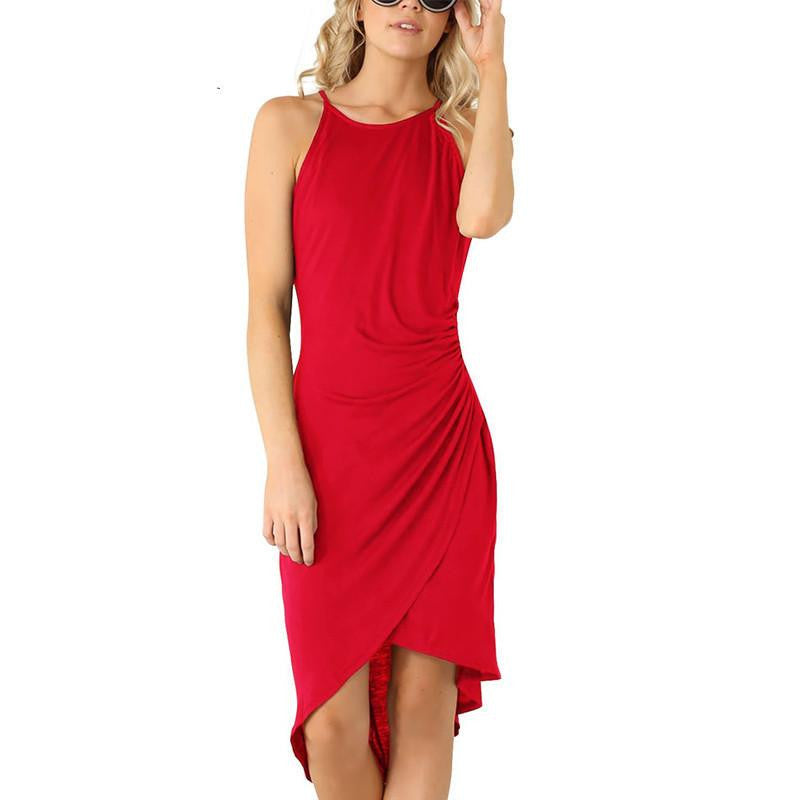 Asymmetrical knee length dress can be yours, get this exciting casual summer dress that reaches the knee and is sleeveless.