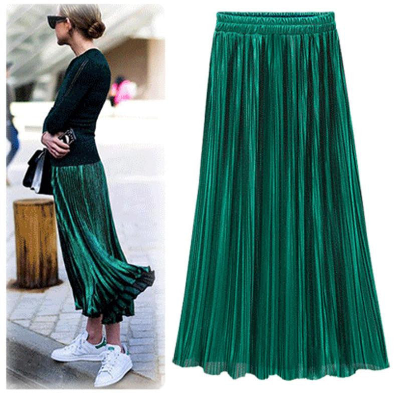 Whether it's winter or spring, our Women Fashion Gold Sequined Skirts Female Black Red Green High Waist Pleated Midi Novelty Midi Skirts are a fantastic addition to your seasonal wardrobe. Ideal for festive gatherings, parties, or even a night out with friends, this skirt is versatile enough to suit any occasion.