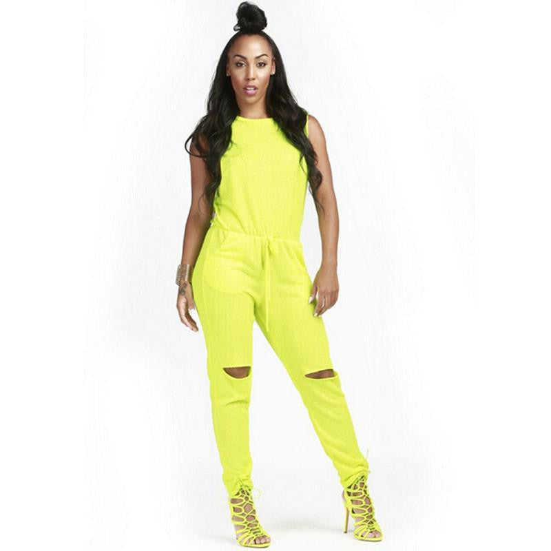 Crafted from a premium blend of cotton and polyester, this bodycon jumpsuit features a flattering fit and a chic drawstring waist that accentuates your curves. The hollow design adds a unique touch, making it not just a piece of clothing, but a statement. Available in a variety of vibrant colors such as white, yellow, red, green, black, blue, and pink, you can easily find the perfect shade to match your personal style.