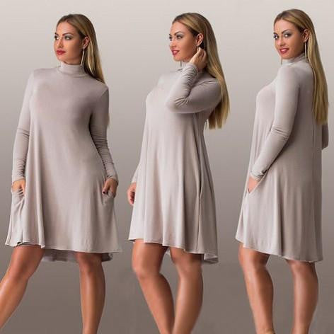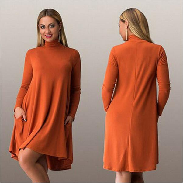 Get the elegant long sleeve High neckline loose dress. This perfect piece comes with two side pockets and is cute.