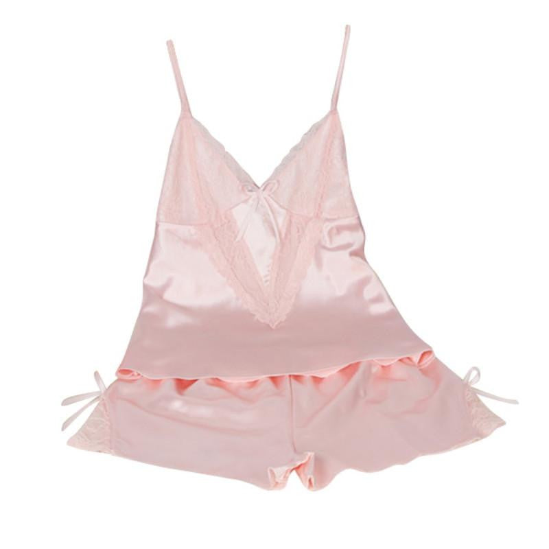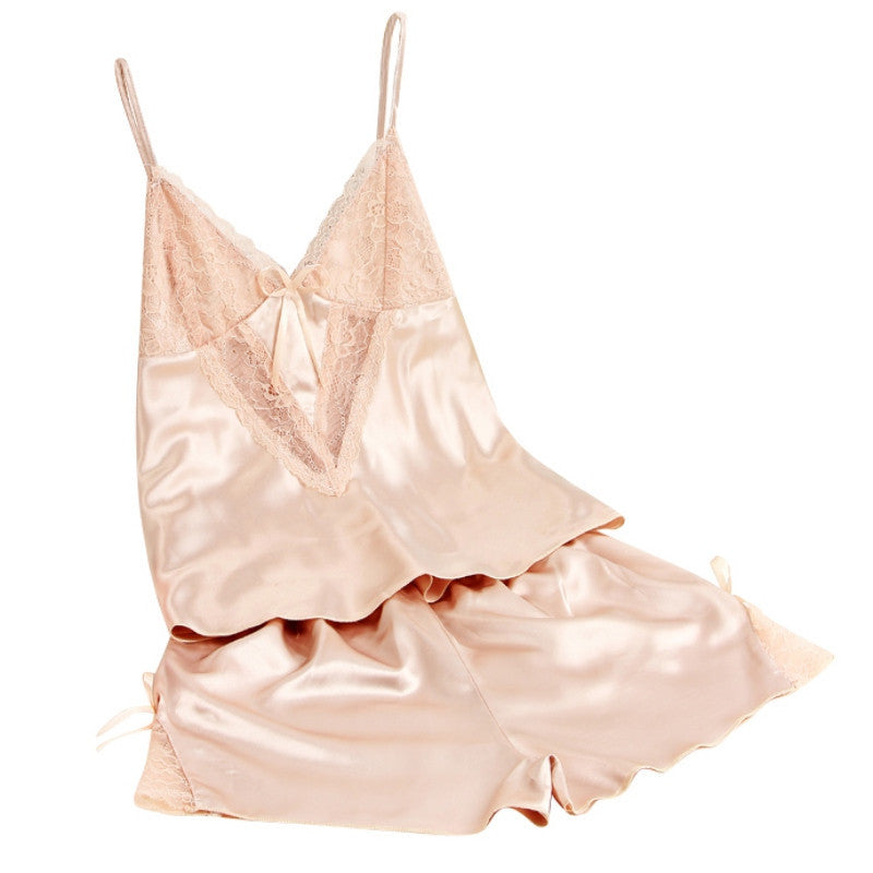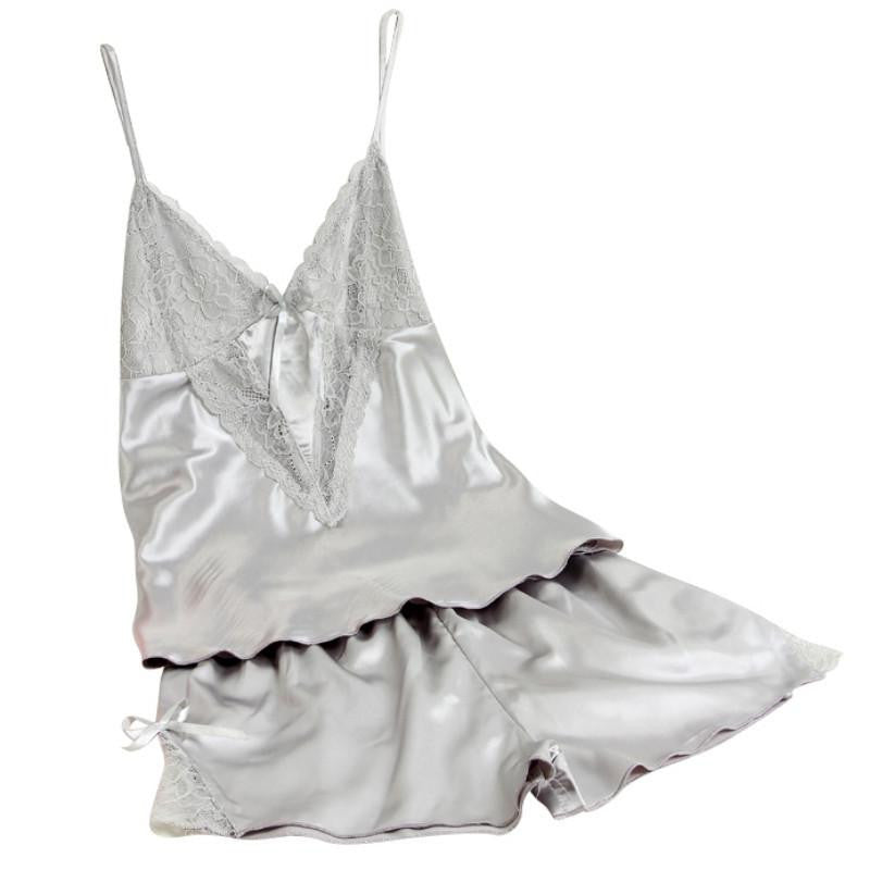 Indulge in luxurious comfort with our Women Pajamas Silk Pijamas Pyjama Minion Sleepwear Deep V Sleeveless Suspenders Lingerie Set and transform your nights into a stylish affair!