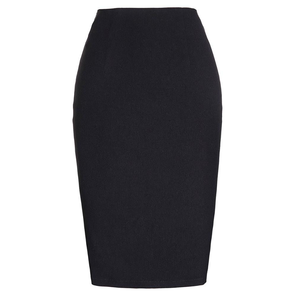 This stunning piece is a high-waisted polyester spandex knee-length pencil skirt get this fashionable piece now. Available in your size.