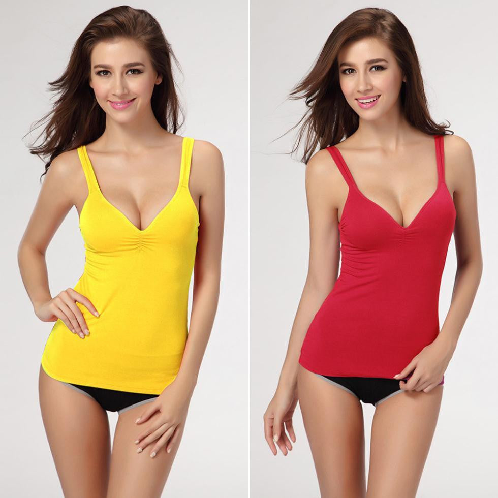 Available in solid colors, this cami top easily pairs with your favorite jeans, skirts, or shorts. Dress it up or down to match any occasion. Whether you're heading to a brunch or a night out, this Women Strap Tops Built In Bra Bra Modal Cotton Soft Tank Cami Top is your go-to for effortless style.