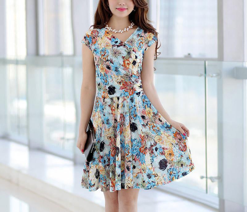 This floral mini dress speaks summer and fun. This colorful dress is fashionable and comfortable. This summer be carefree and happy.