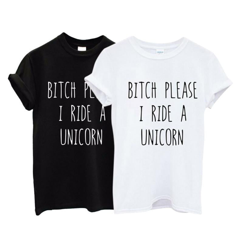 Don't miss out on this opportunity to add a statement piece to your collection. The Women T Shirt BITCH PLEASE I RIDE A UNICORN Print Letter Casual Funny Cotton Shirt For Lady Tops Tees Hipster is perfect for those who love to stand out with their style while embracing comfort. Grab yours today and let your tee do the talking!