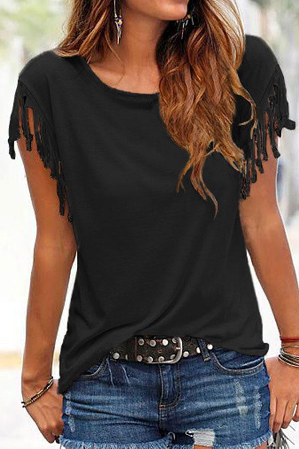 Elevate your wardrobe with our Women T Shirt Tops Knot Tassel Tee Crewneck Slim Fit Fashion Elegant. This stunning piece merges style and comfort, making it a must-have for any fashion-forward woman. Designed with a chic crewneck and trendy tassel accents, this tee is perfect for various occasions, whether you’re dressing up for a night out or keeping it casual during the day.