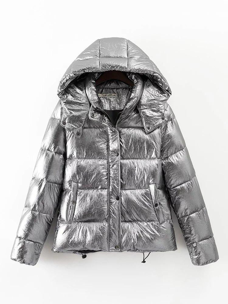 Introducing our exquisite Women jackets Short warm coat Silver metal color bread style parka, designed to elevate your wardrobe while providing maximum comfort. This stunning piece is perfect for layering, offering both style and functionality for any occasion. With its elegant silhouette, you can effortlessly exude class and sophistication.