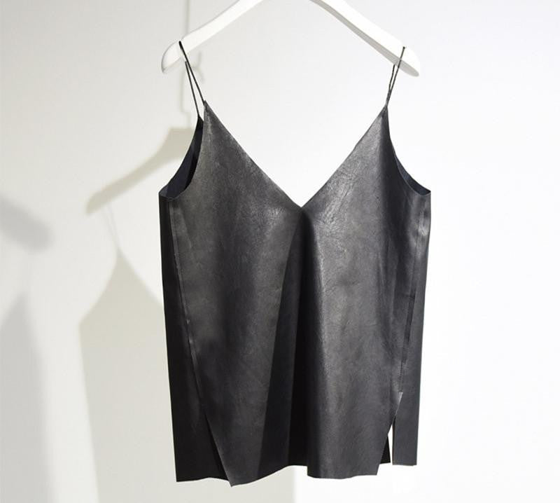 Introducing the Women's Brief V Neck Camisole Casual Ladies Faux Leather Bottoming Shirt Sides Splits Black Vest For Girls SH158, a must-have addition to your wardrobe this season! This effortlessly chic piece combines style and comfort, making it perfect for any casual outing or night out on the town. Crafted with premium materials, this camisole ensures you feel confident and comfortable all day long.